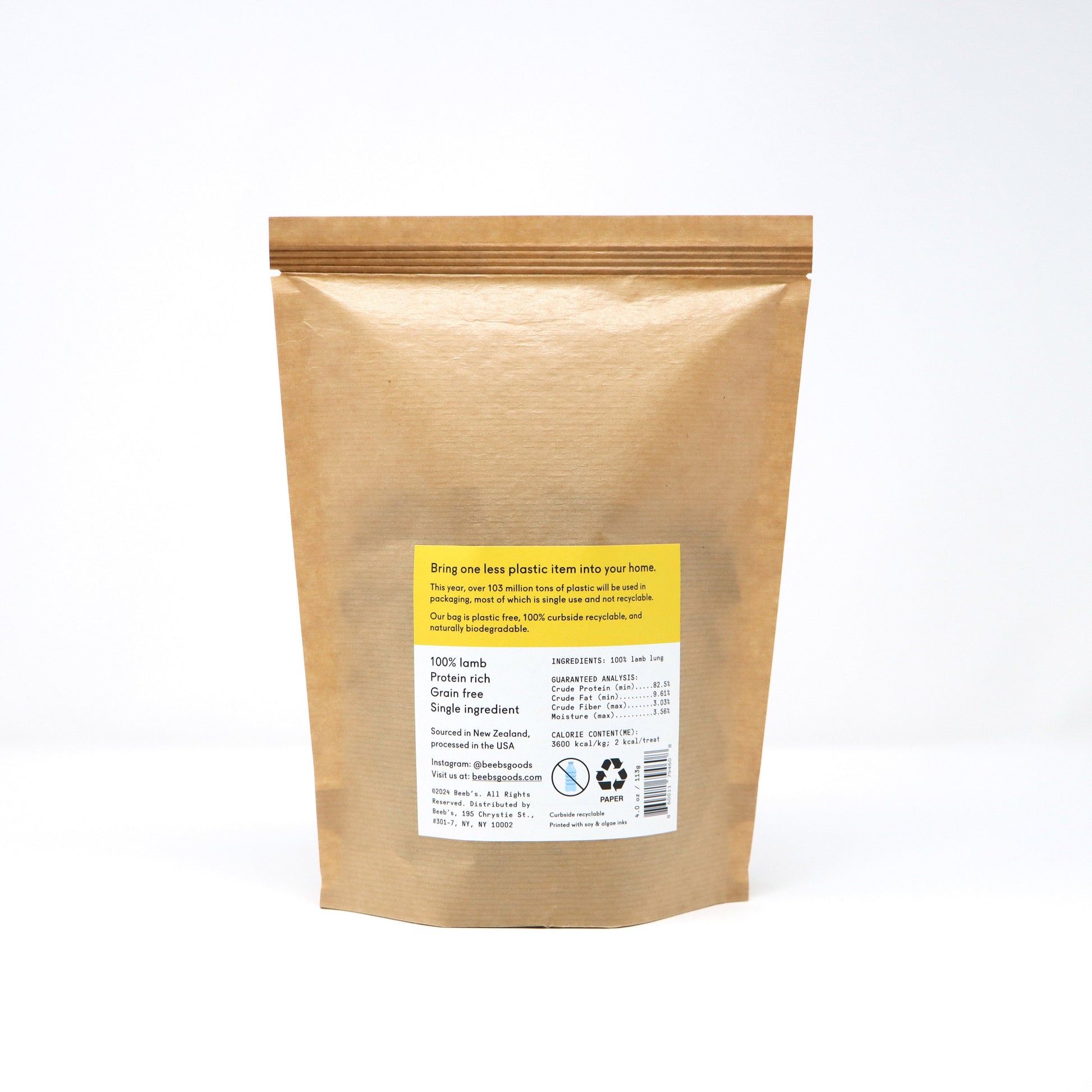 Single Ingredient • 100% all natural, grass-fed lamb lung dog treats from New Zealand, packaged in plastic-free packaging 🍃