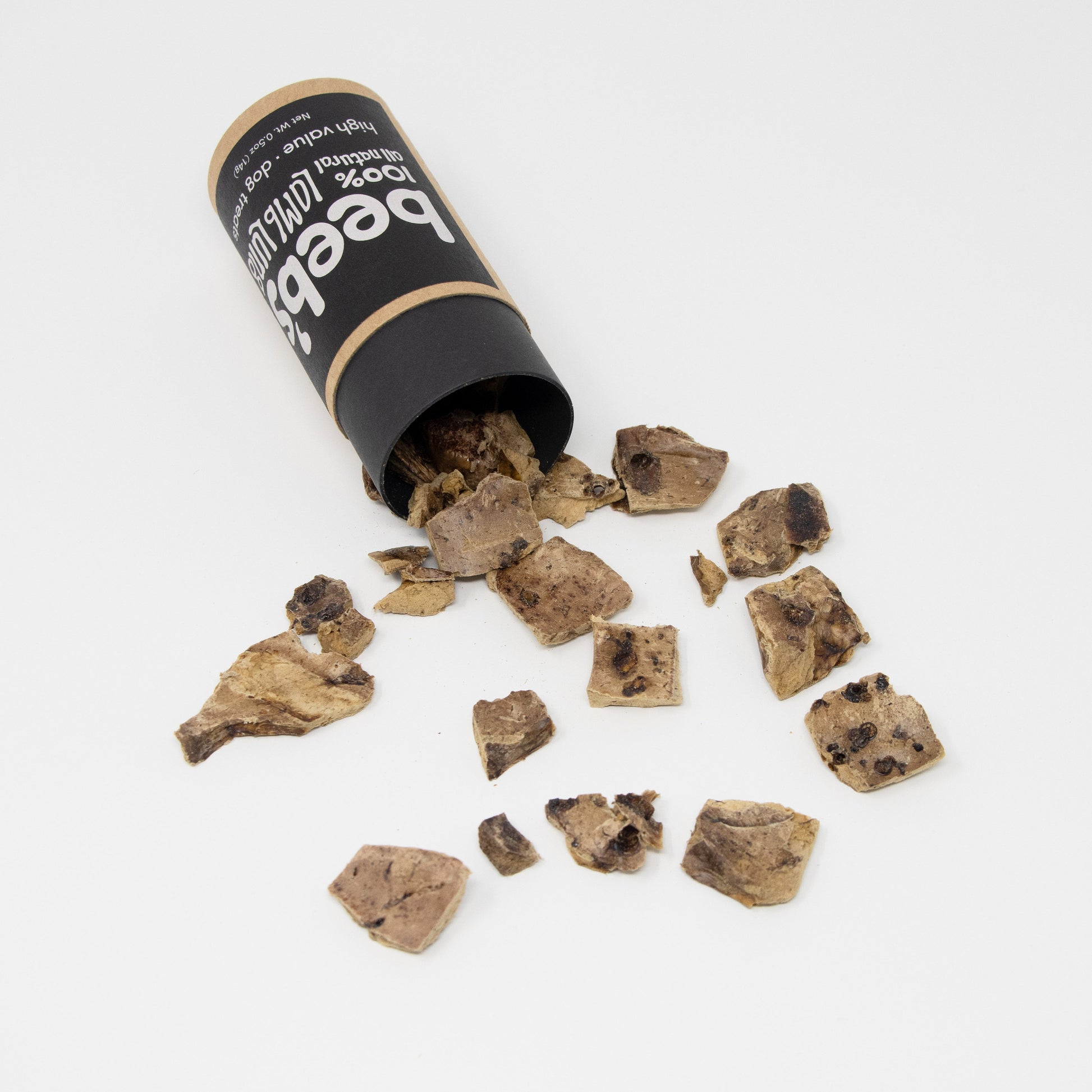 I, and more importantly my dog, love Beebs. Their commitment to being plastic free won me over and my dog is obsessed with the lamb lung.